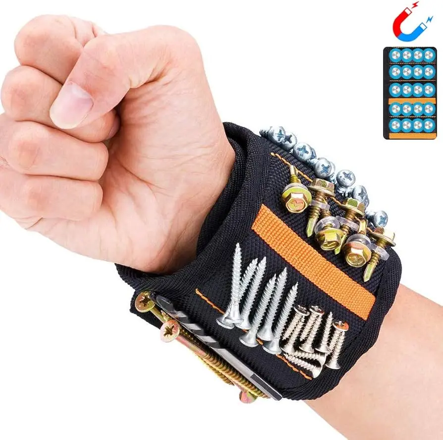 El Brazalete Magnético de Herramientas es el accesorio ideal para trabajos de carpintería, electricidad, mecánica y bricolaje. Permite mantener tornillos, clavos, brocas y pequeñas piezas metálicas siempre al alcance de la mano, mejorando la eficiencia y comodidad durante el trabajo.